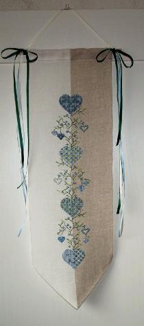 Ich hatte sie mir im letzten Sommer gekauft und bin nun endlich dazu ge- kommen das Band zu sticken. Zukünftig ziert es in unserem Treppen- haus den Platz neben der Wohnung- tür und begrüßt alle Gäste. |