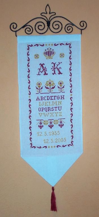 Hier ein Band, das ich zum 50. Geburtstag meiner Tante gestickt habe.