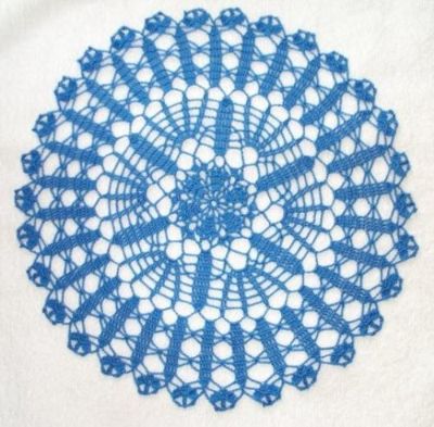 Mal wieder ein Deckchen in Blau. Diesmal für Mamje zum Geburtstag im Juni 2005.